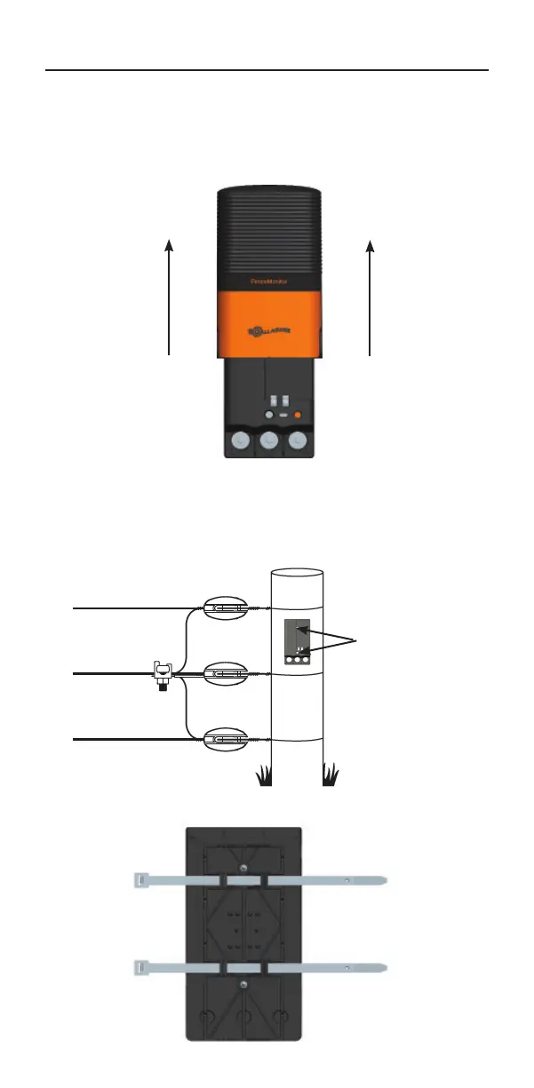 ou à un poteau en acier (schéma B) grâce aux serres-câbles.