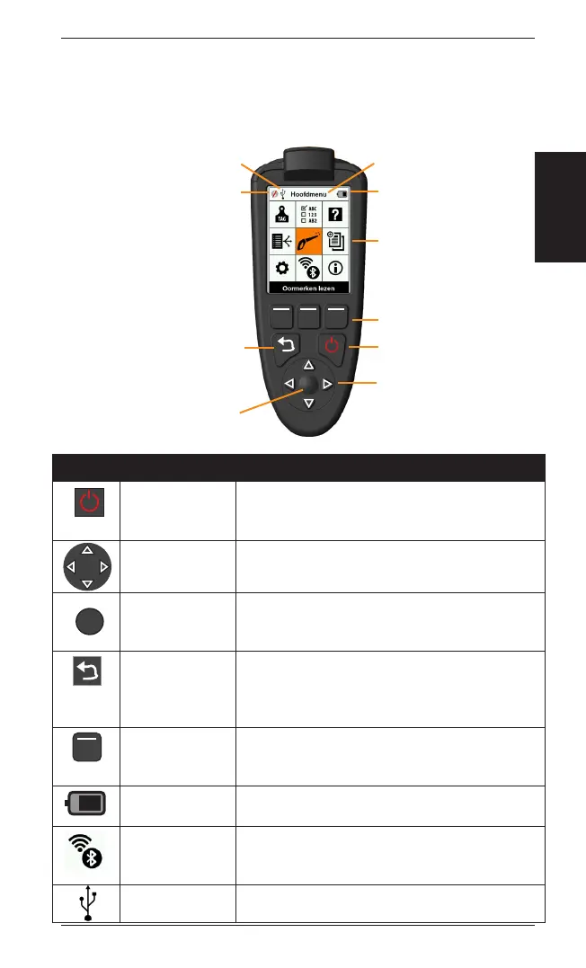 Terug/Return Druk op deze toets om een scherm te sluiten en