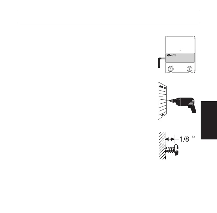 cabeza del tornillo 1/8” fuera de la pared.