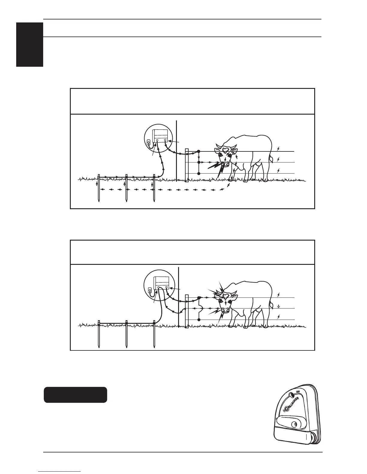 Improperly earthed energizers can cause barns, gates etc to become hot. Follow