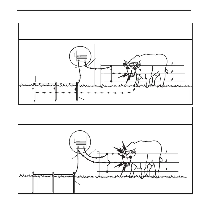 L’animal doit toucher à la fois à un fi l électrifi é et au