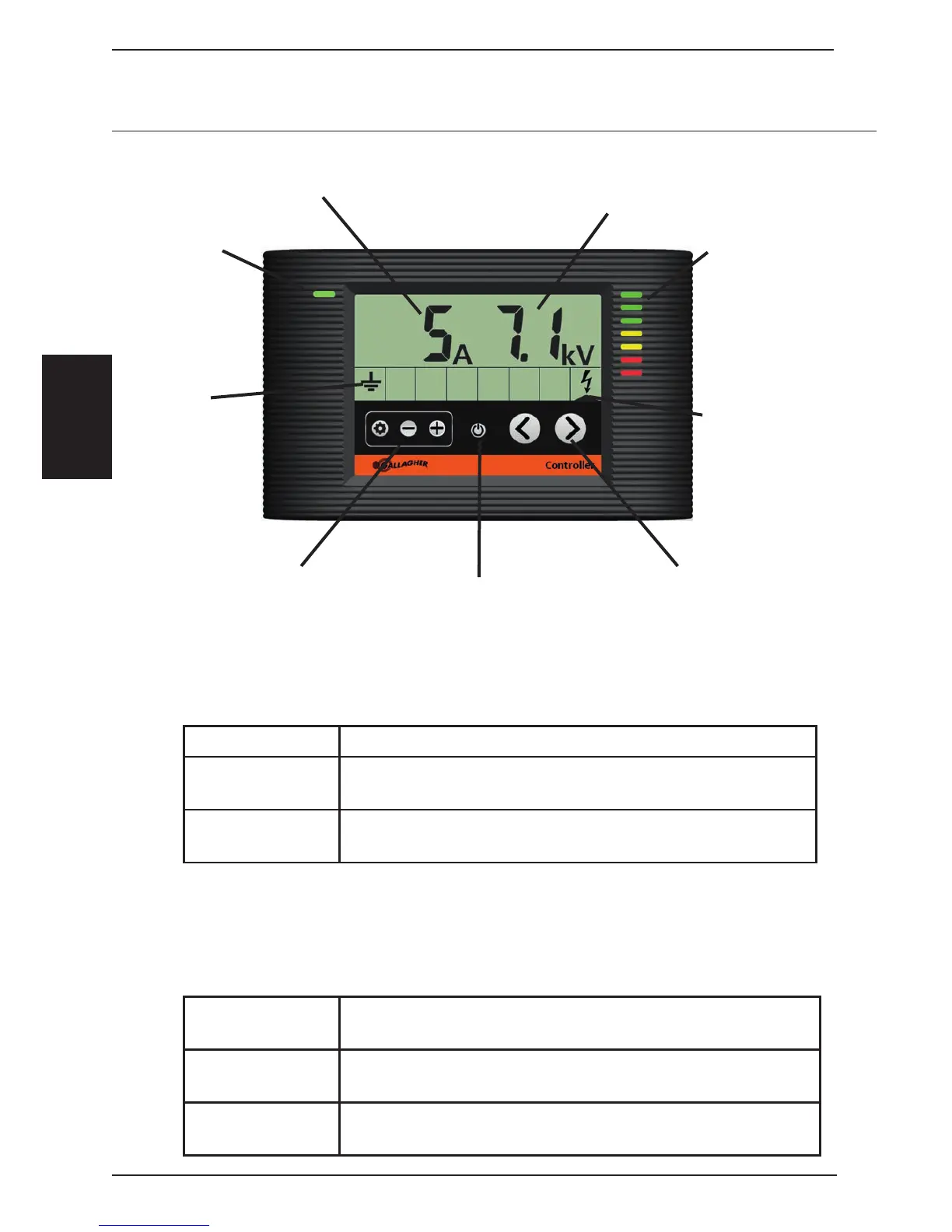 la tension de sor e de l’électrifi cateur. Chaque barre lumineuse représente