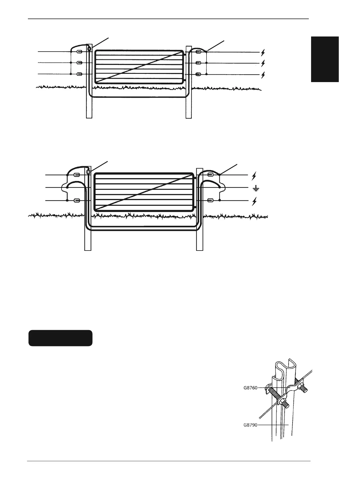 aƩ aching Oī set Brackets (G6590 or G6620) and an electriĮ ed wire on both sides of