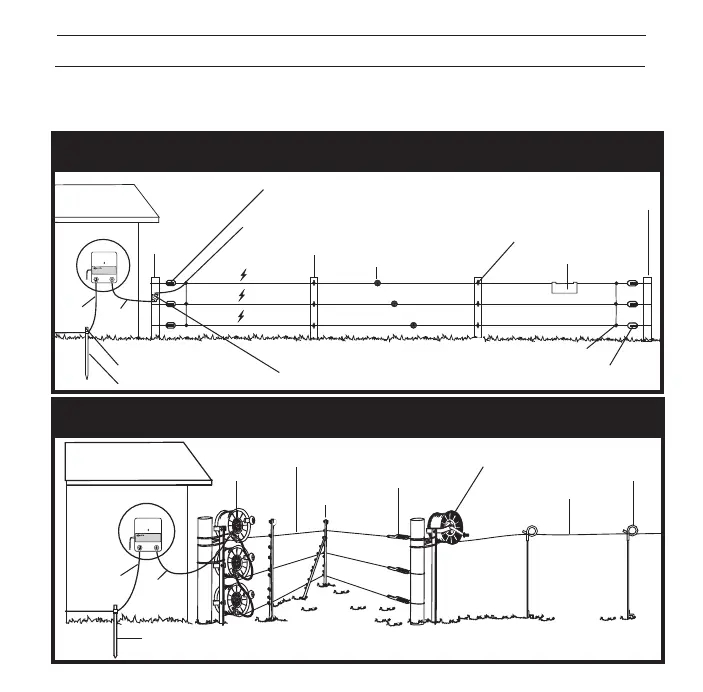 Los cables de tierra y de la cerca son proporcionados