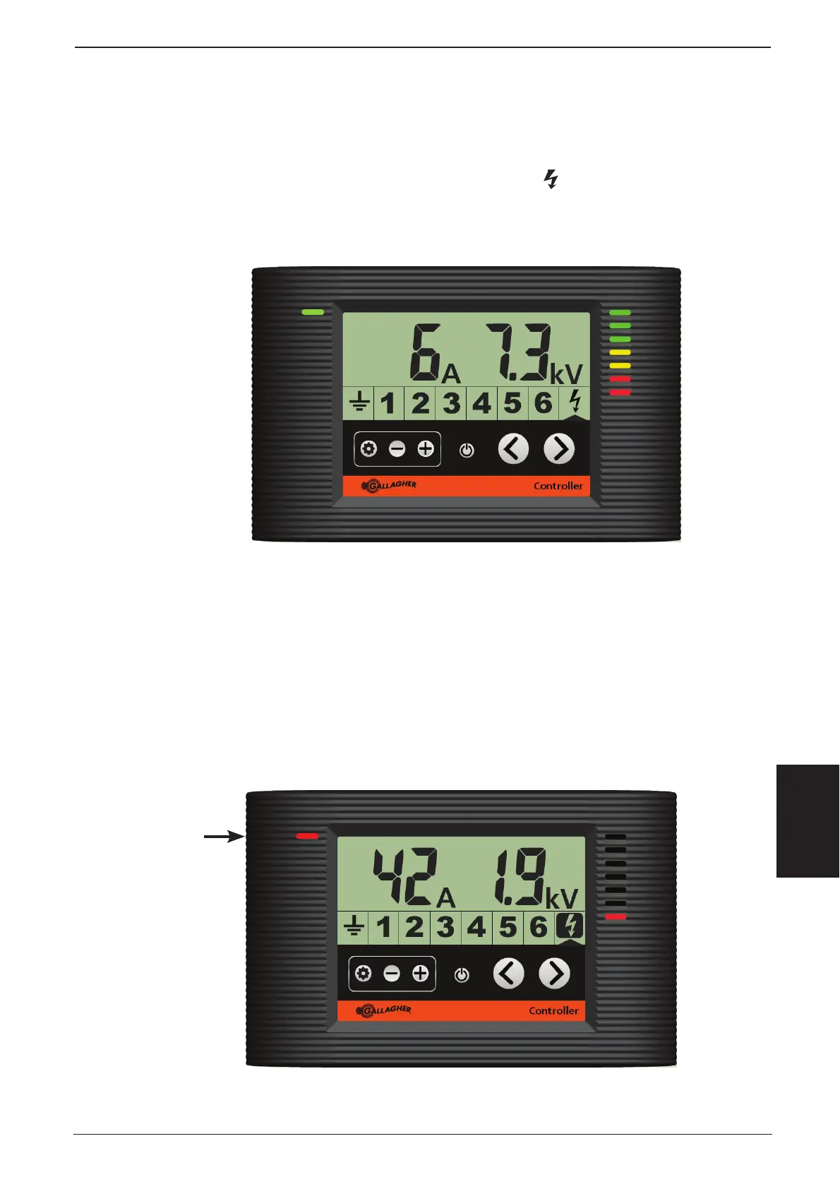 Controlador mostrando el Energizador en alarma de voltaje de salida