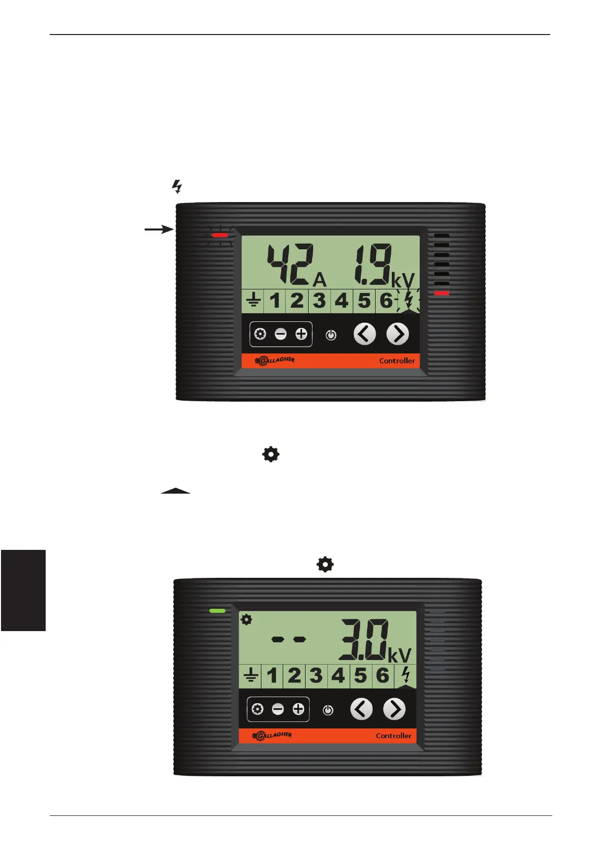 (voltaje demasiado bajo) Gallagher recomienda fi jar el nivel de alarma de la corriente