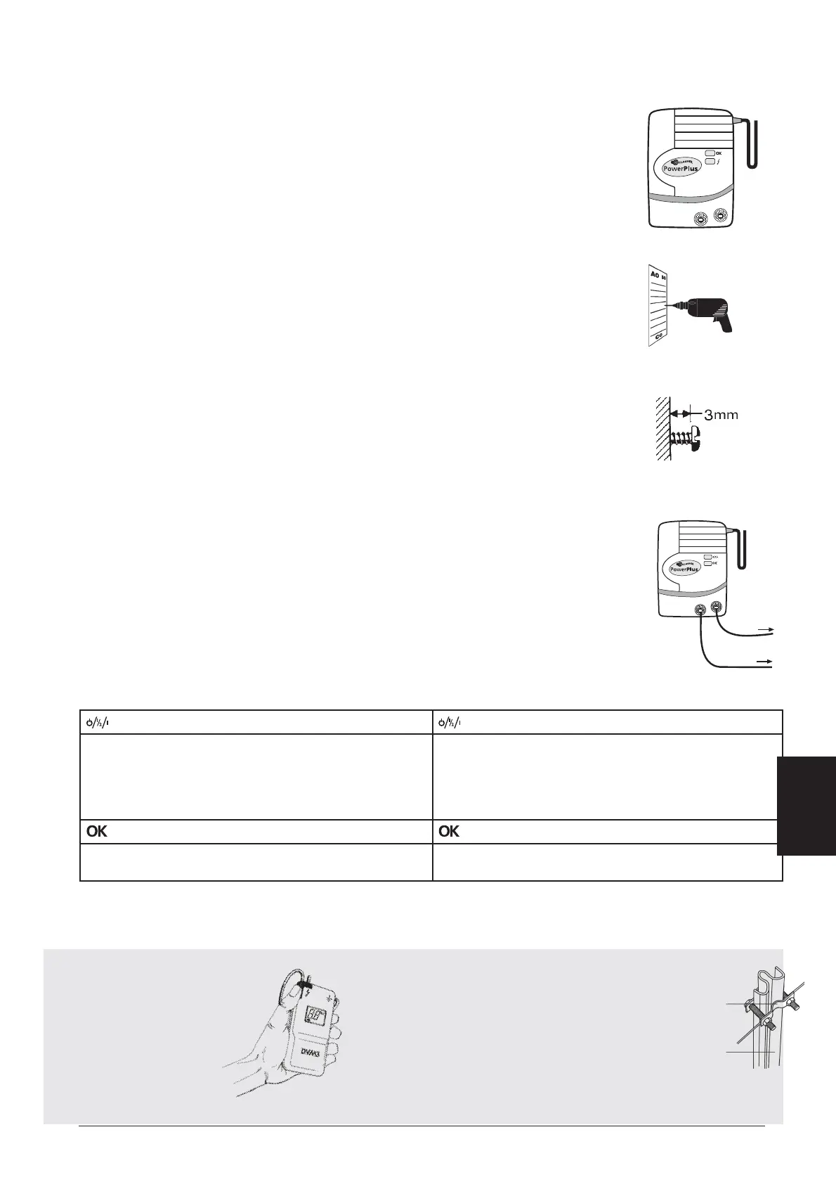 a) Instale el Energizador sobre una pared bajo techo, fuera del alcance de los niños, cerca