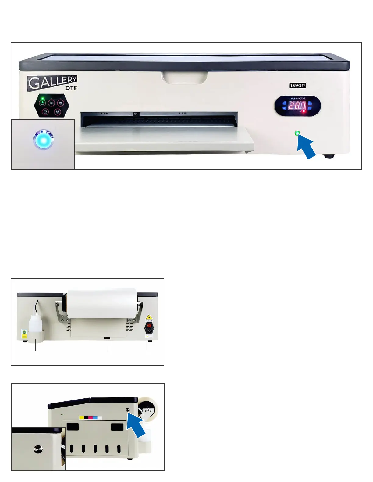 The front right side of the printer has an LED show ink circulation status
