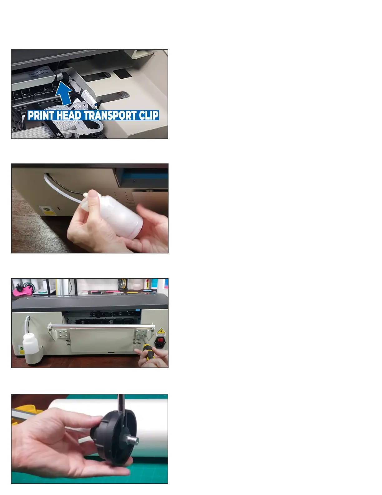 printer. Attach empty bottle to waste ink line.