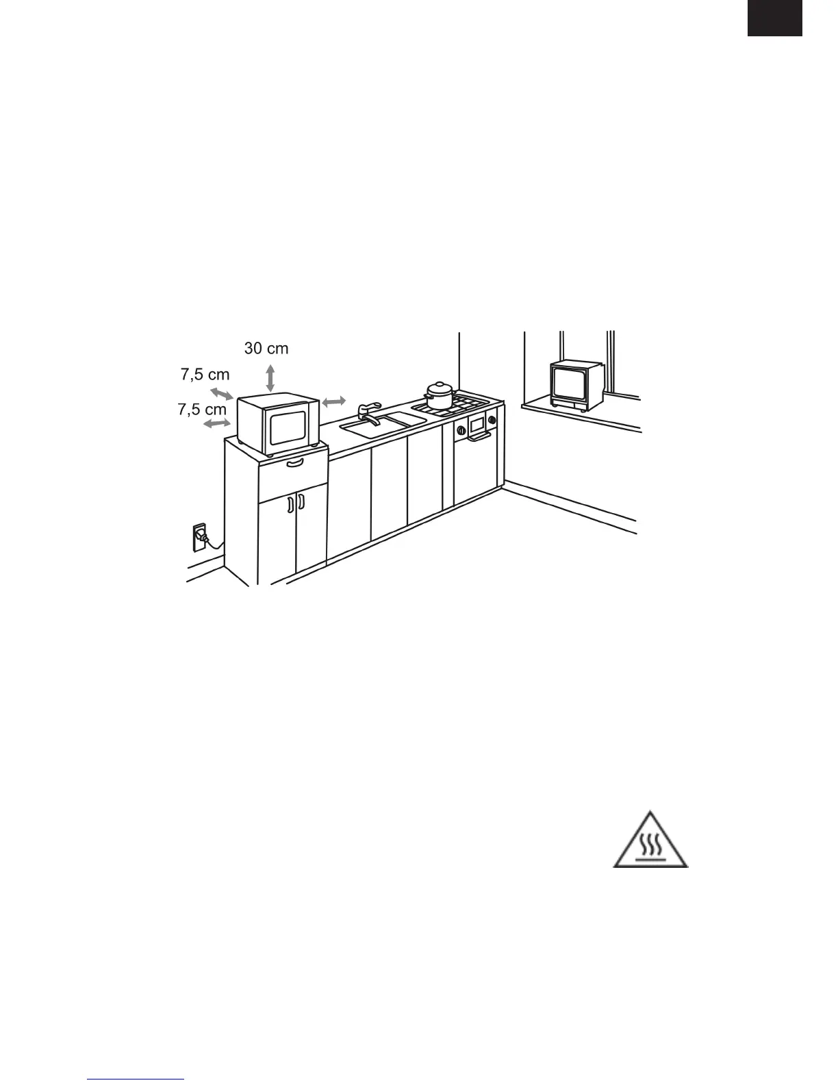 3. - Ponechejte minimálně 30 cm volného prostoru nad troubou.