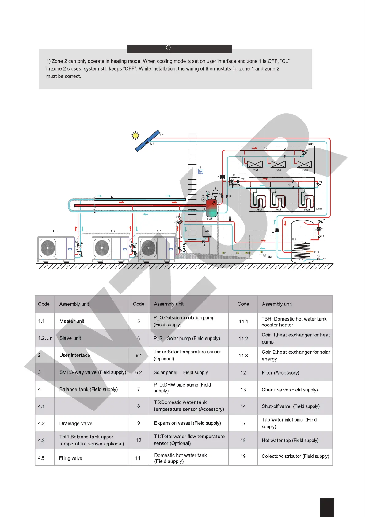 2) Drainage valve must beinstalled at the lowest position of the piping system.