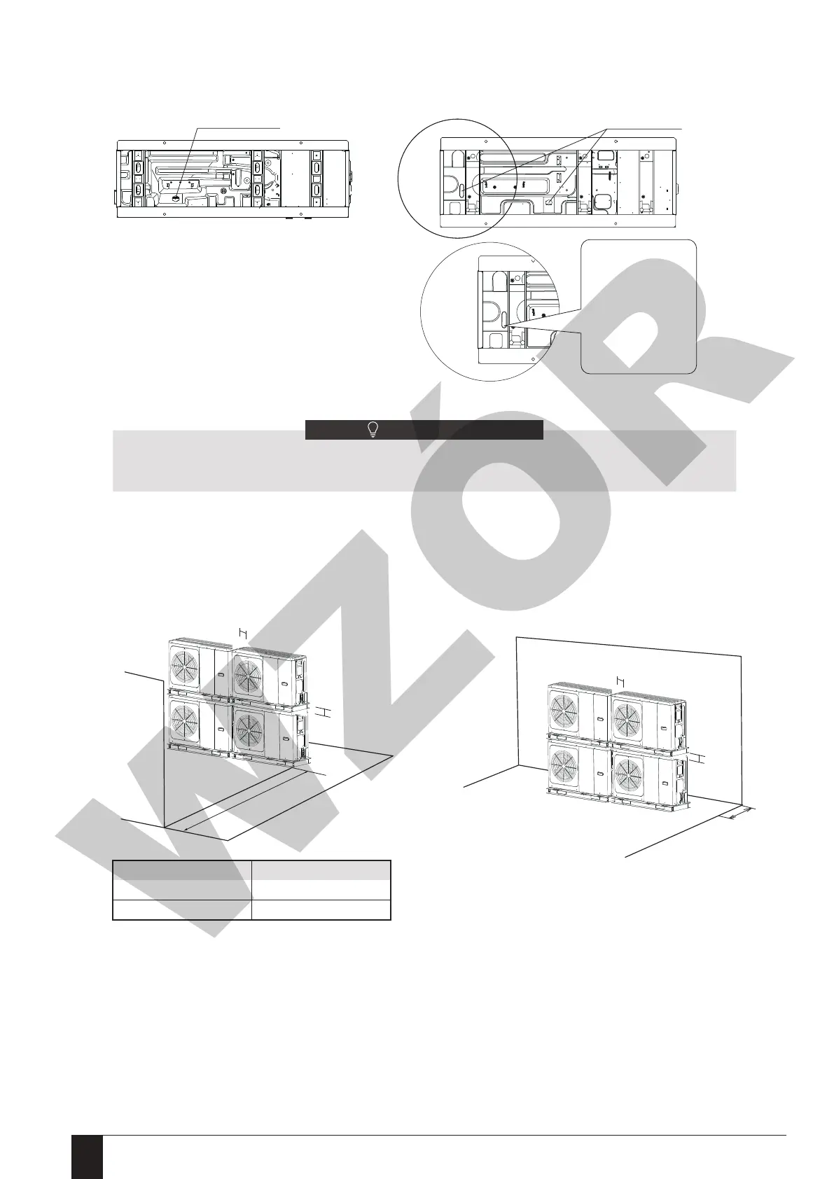 1) W przypadku przeszkód z przodu wylotu powietrza. 2) W przypadku przeszkód z przodu wlotu powietrza.