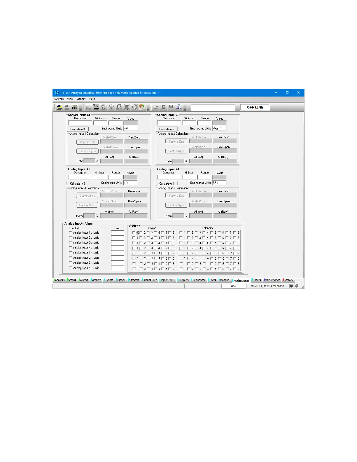 There are four analog inputs, each of which contain are six data entry fields, six results fields