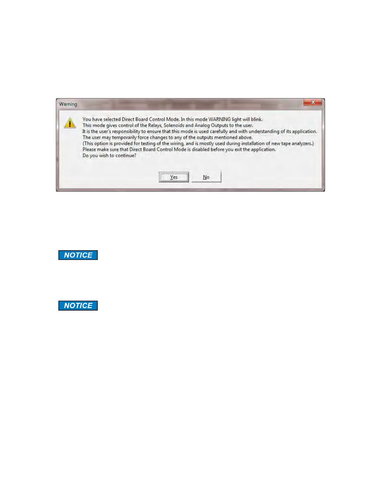 IMPORTANT: If the analyzer is left in direct board control enable mode, no