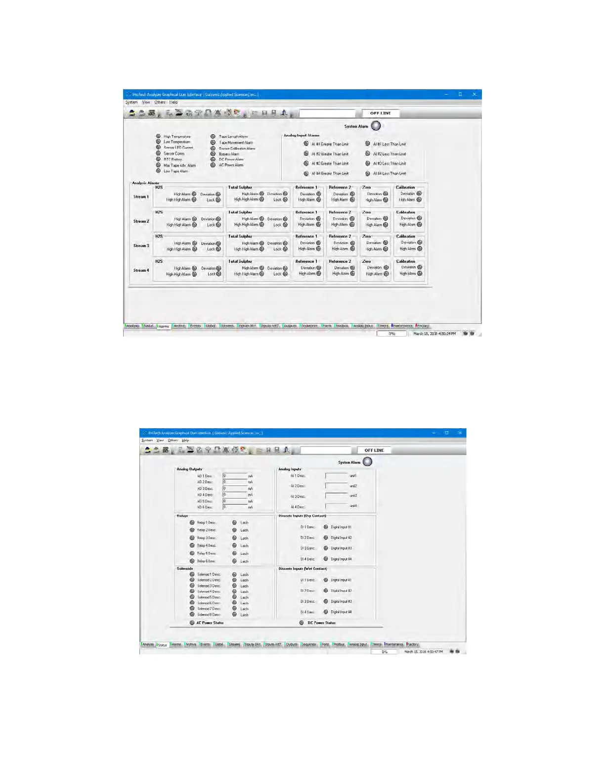 alarm associated with it. A detailed discussion of the Status tab is presented in Section 5.5.