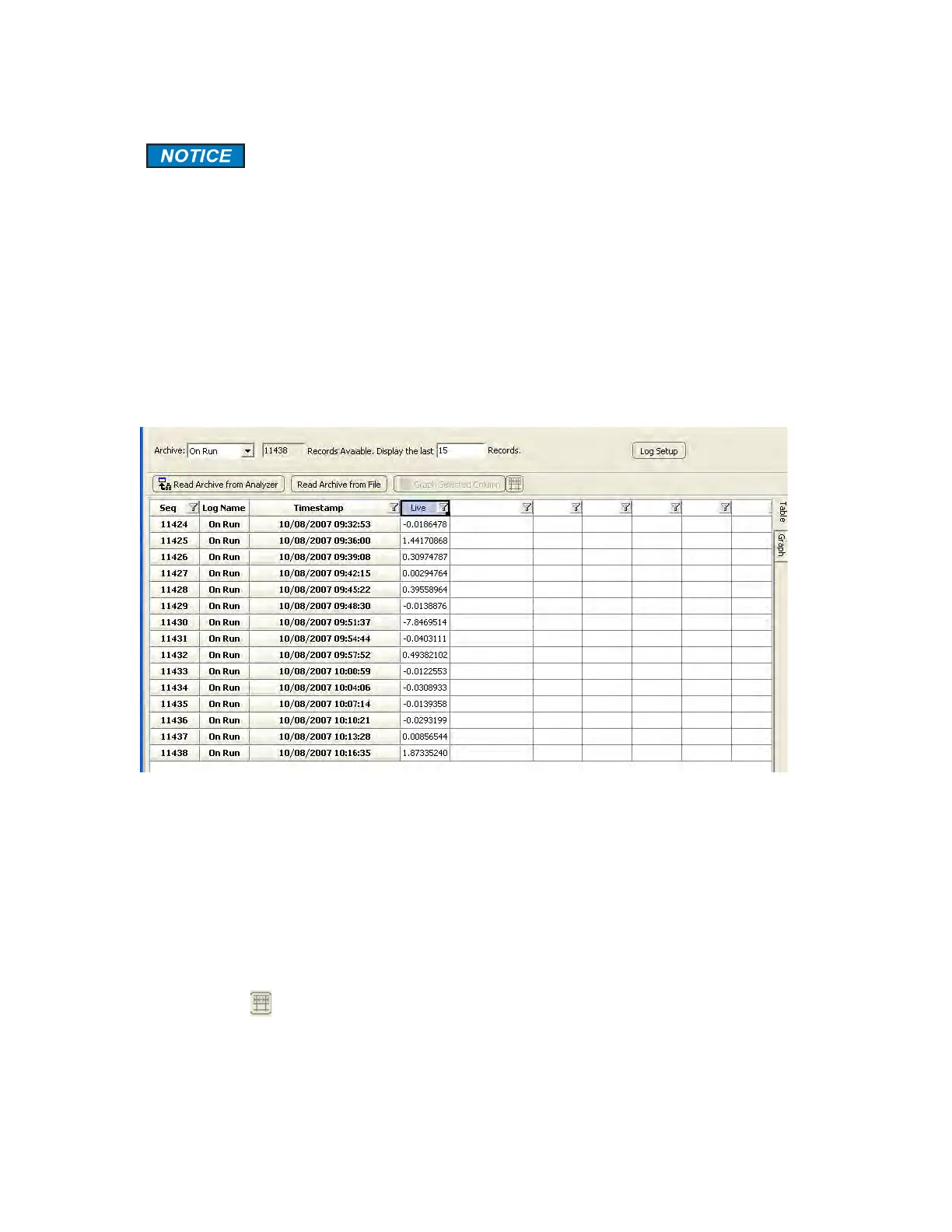 Columns ( ) button at the top of the screen. The archive is set up at the factory to log the
