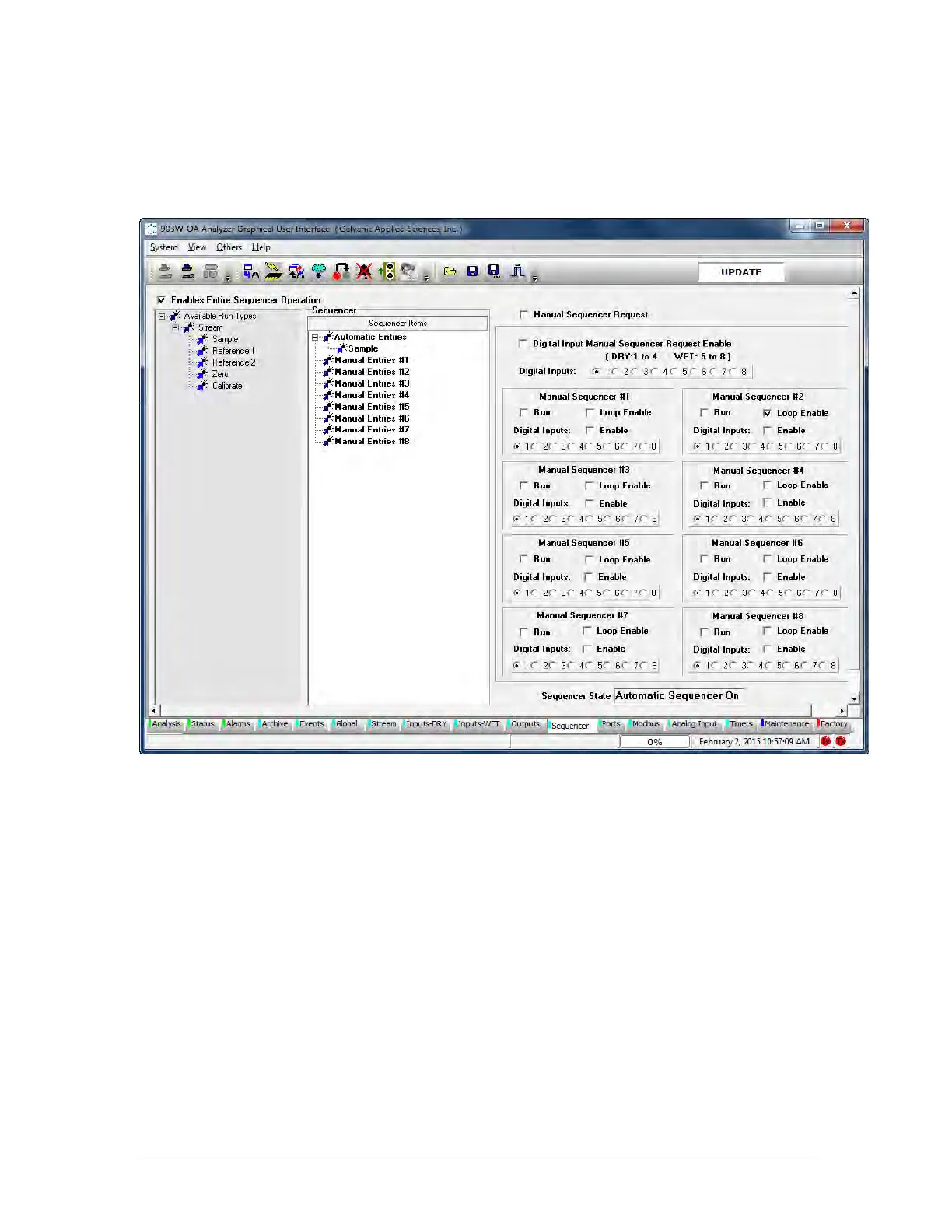 The Sequencer tab (Figure 5-29) is used to generate the analyzer gas run sequences or
