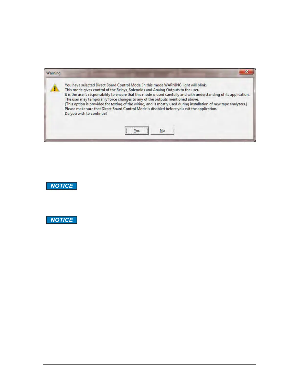 IMPORTANT: If the analyzer is left in direct board control enable mode, no