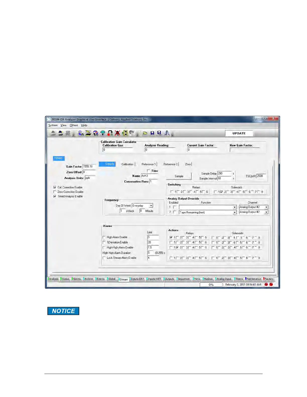 calibration samples, zero samples. The Stream tab (Figure 6-3) is used to enter information