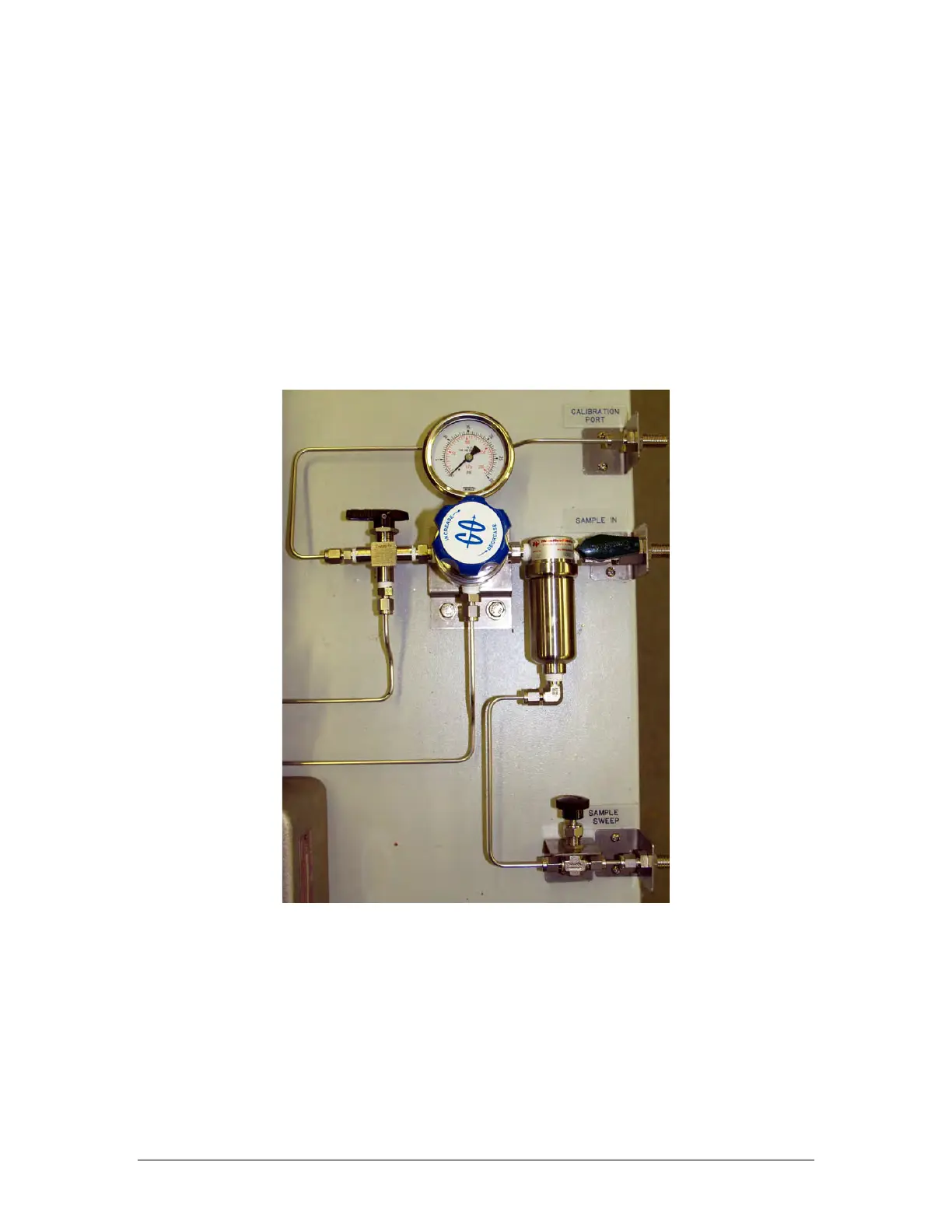 The sample conditioning system generally consists of a filter, a pressure regulator to regulate