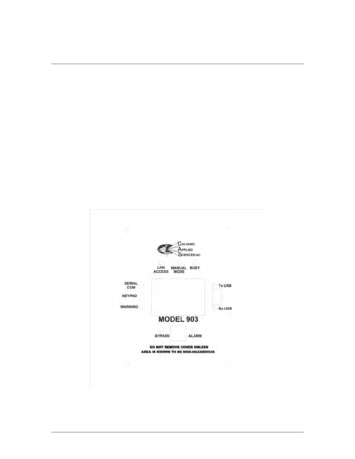 The front panel of the analyzer includes a series of LEDs and a LCD display which provides