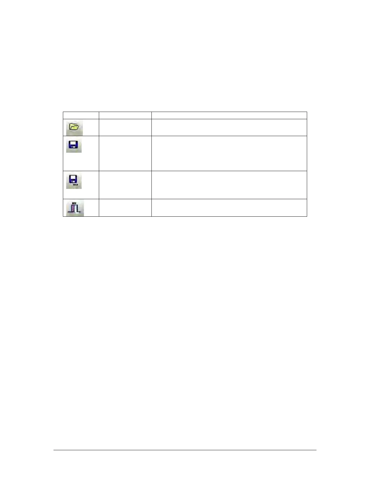 shows the buttons in the General Toolbar. A saved configuration file can be opened, edited