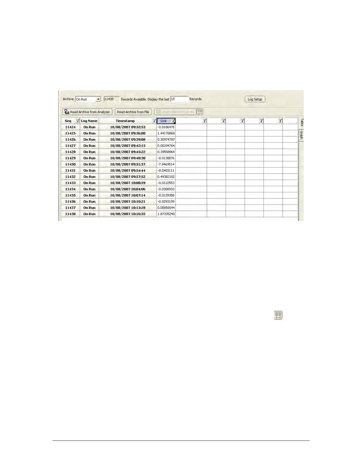 at the top of the screen. The archive is set up at the factory to log the data points of the