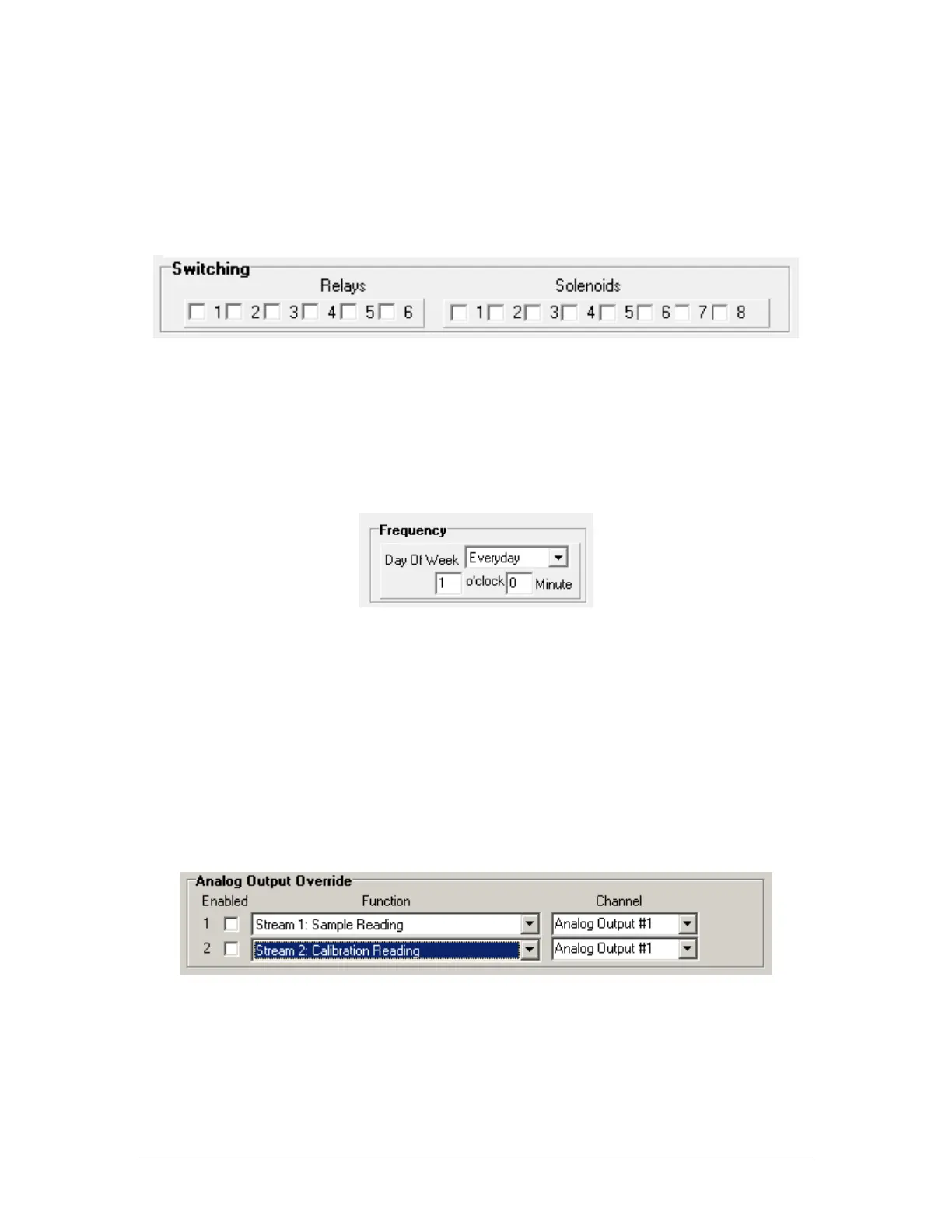 The Switching field (Figure 5-22) allows the user to configure what relays and or solenoids