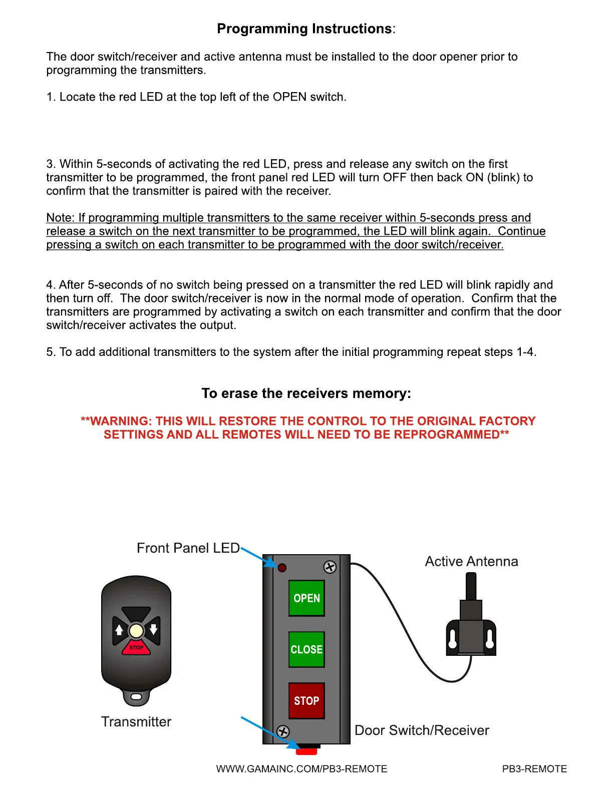 release the program switch. The door switch/receiver memory is now clear.