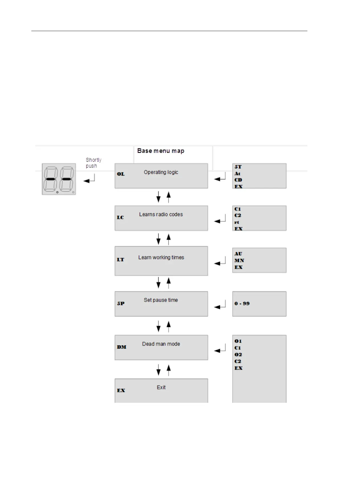 After 2 minutes without actions, the control unit exits itself from this menu.