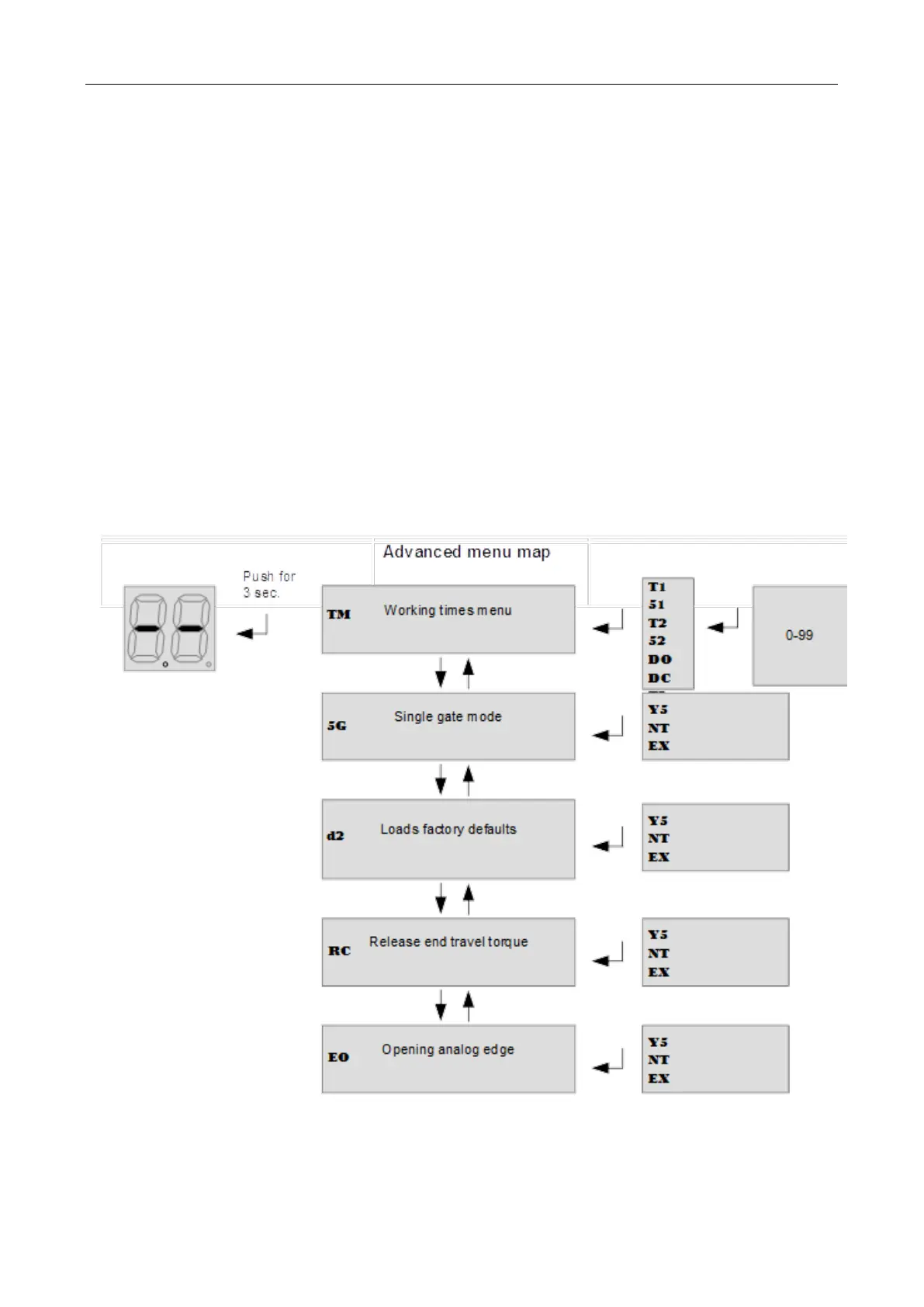 Push enter button till on the display is shown TM. With up/down it’s possible to select all items