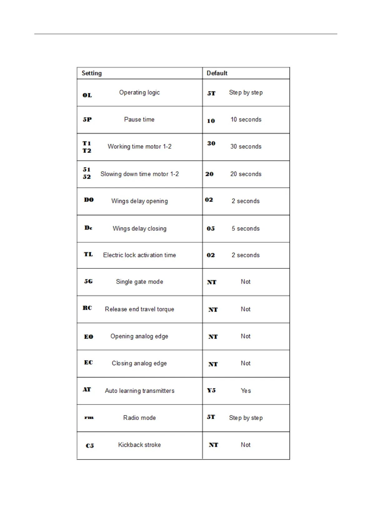Gamatech PK300DC - Default Settings (Factory Presets)