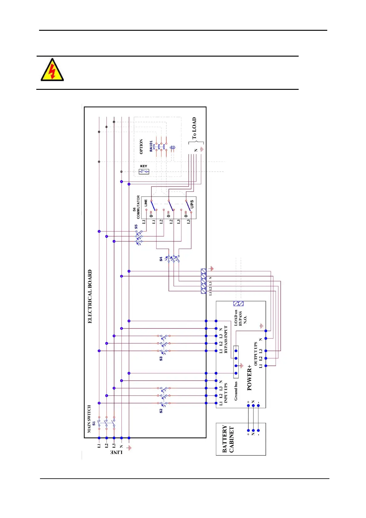 Figure 4-1 illustrates the cabling of the POWER+ system to the mains electricity cabinet.