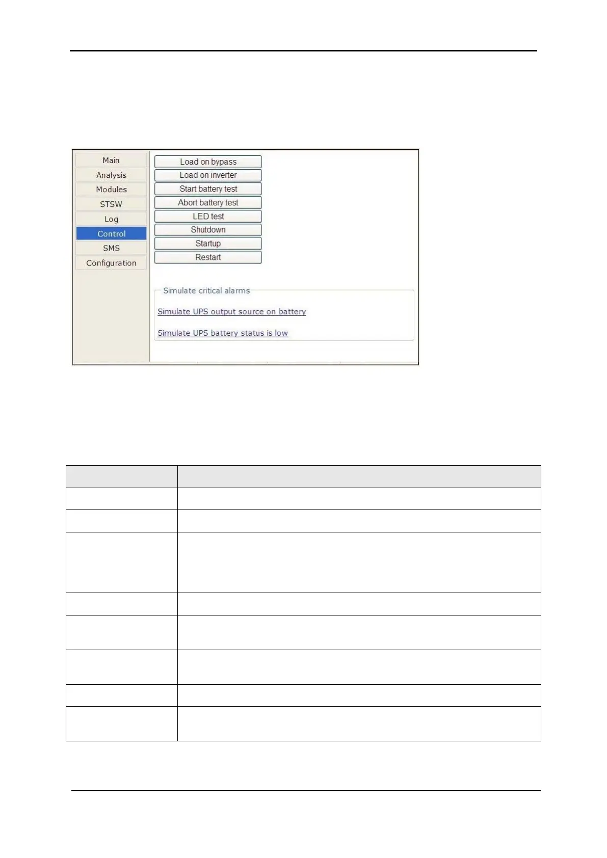 The “Control” main menu option enables the user to initiate any of a number of UPS