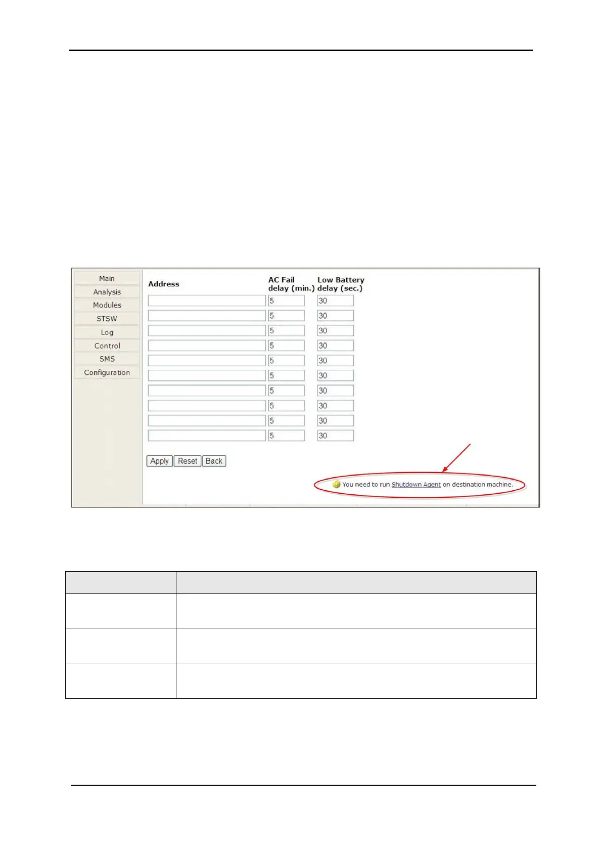 Note: The built-in Web interface supports a maximum of 15 shutdown targets. Customers