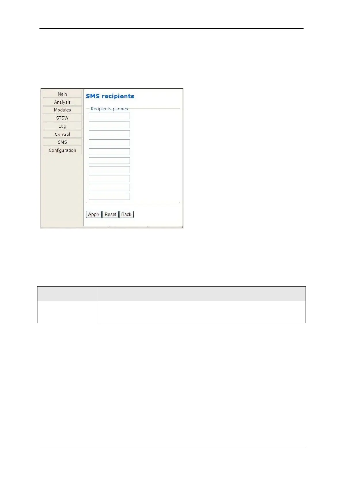 The “SMS notifications” option of the configuration menu enables you to define telephone