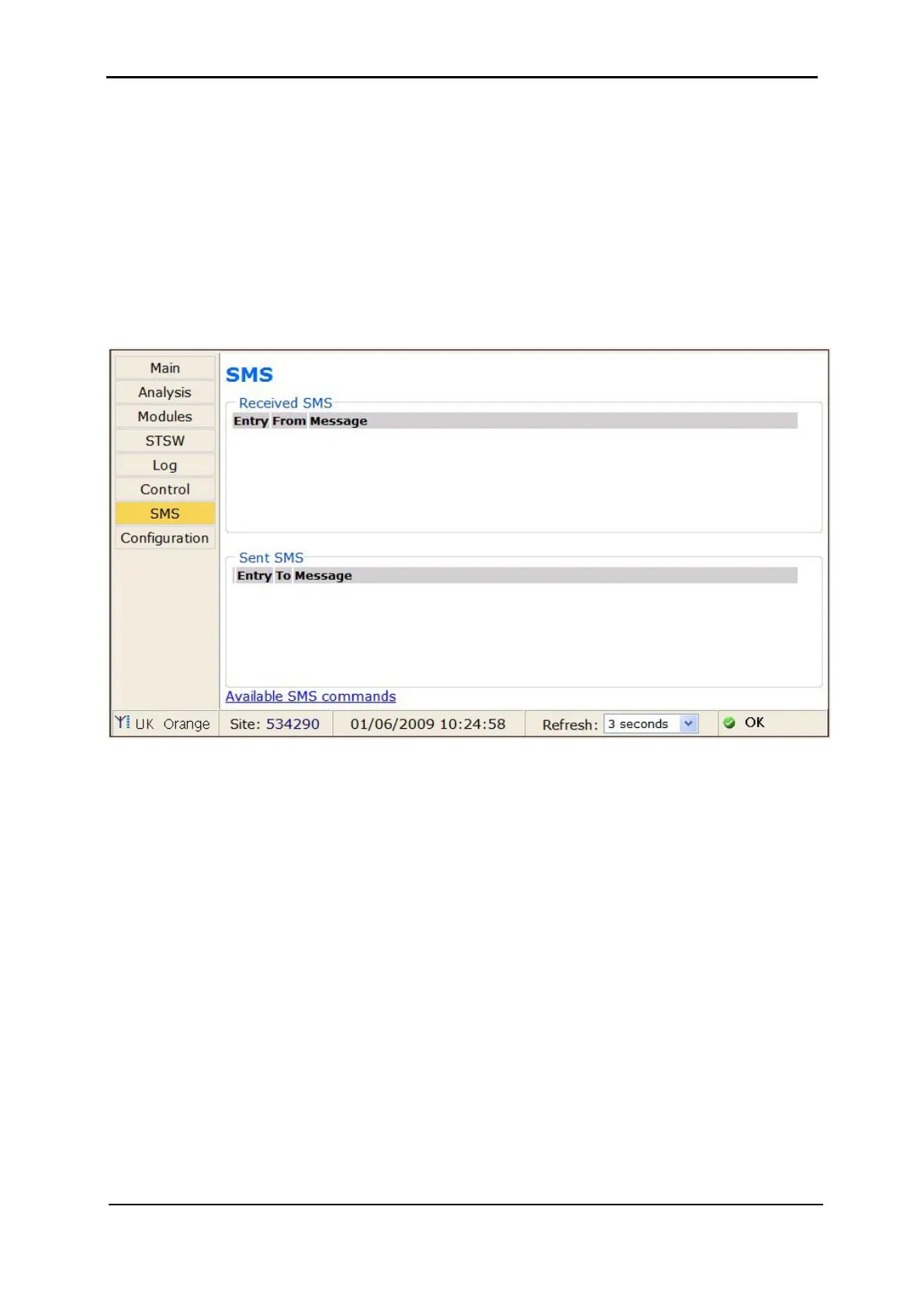 To see a list of the available SMS commands, on the SMS screen select the