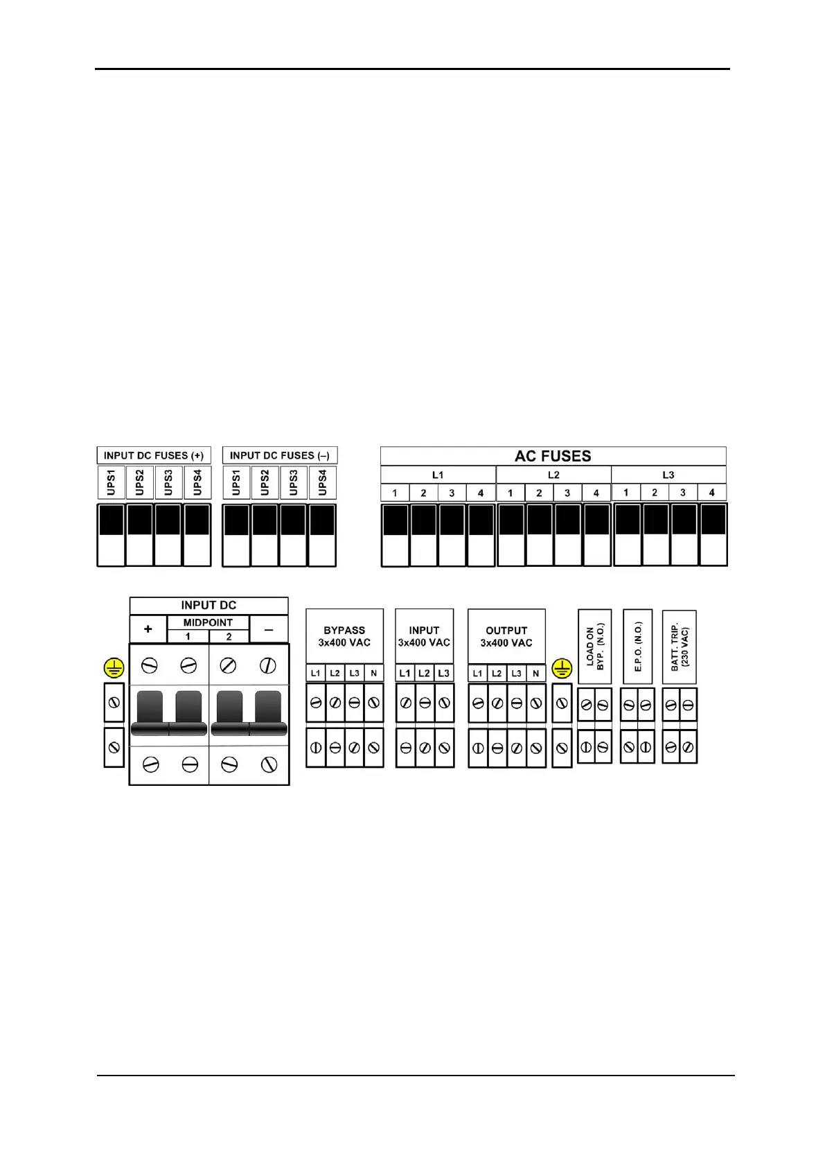 1. Connect the rectifier ac input, bypass ac input, and output cables.