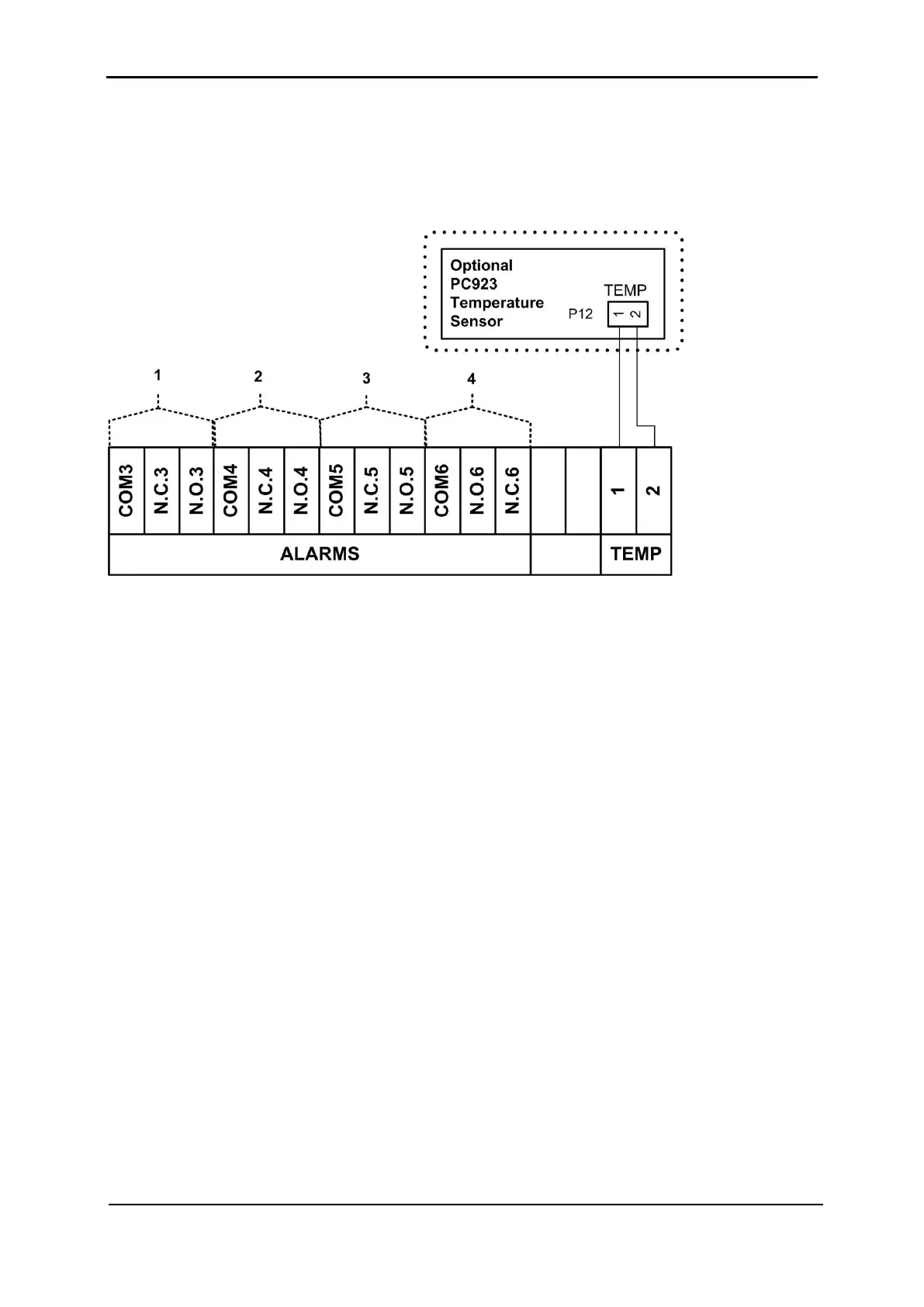 the user. In each group of three output alarm dry contacts, either the N.C. or N.O. contact is