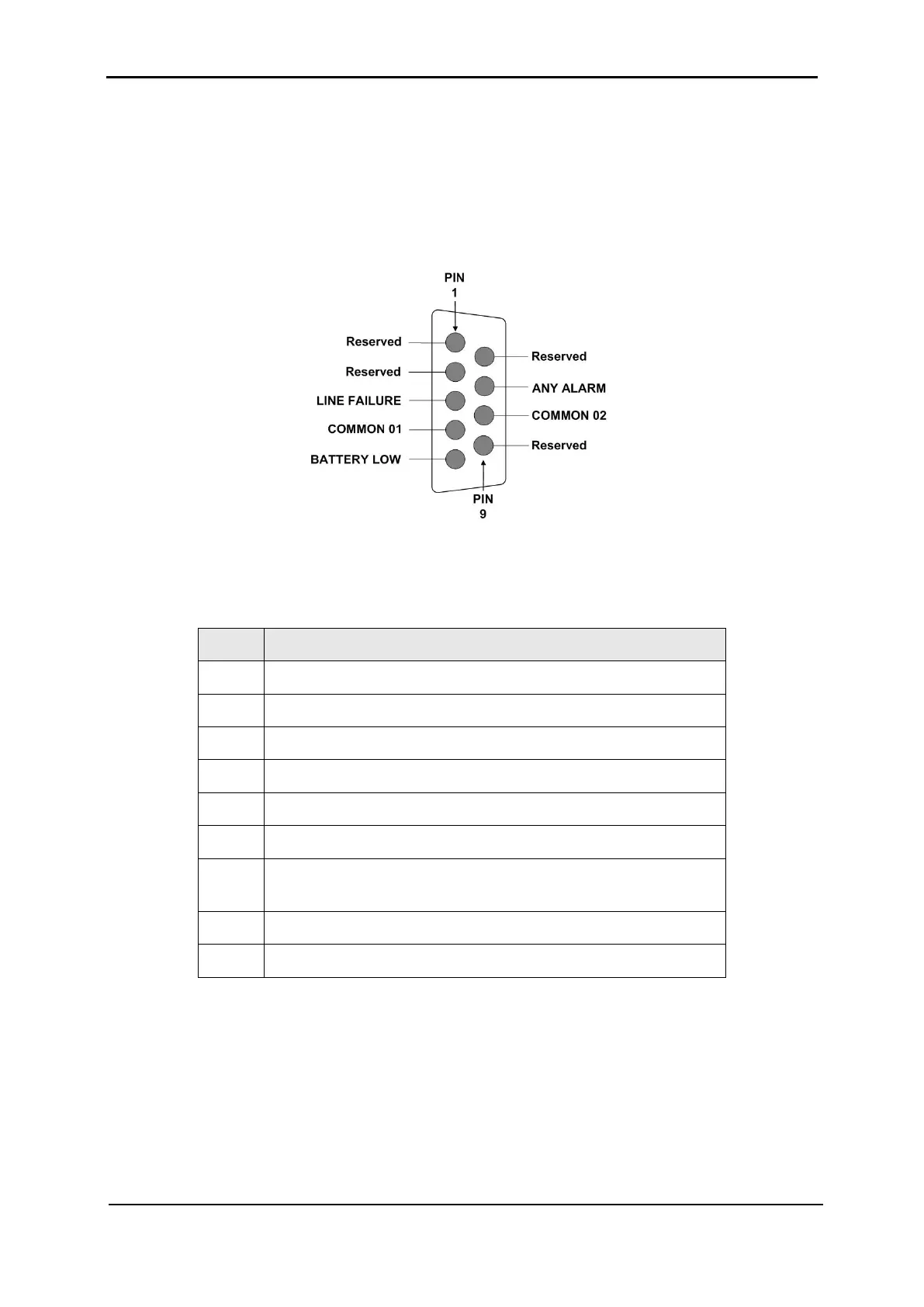 Table 9: Pin usage in D9 alarm output