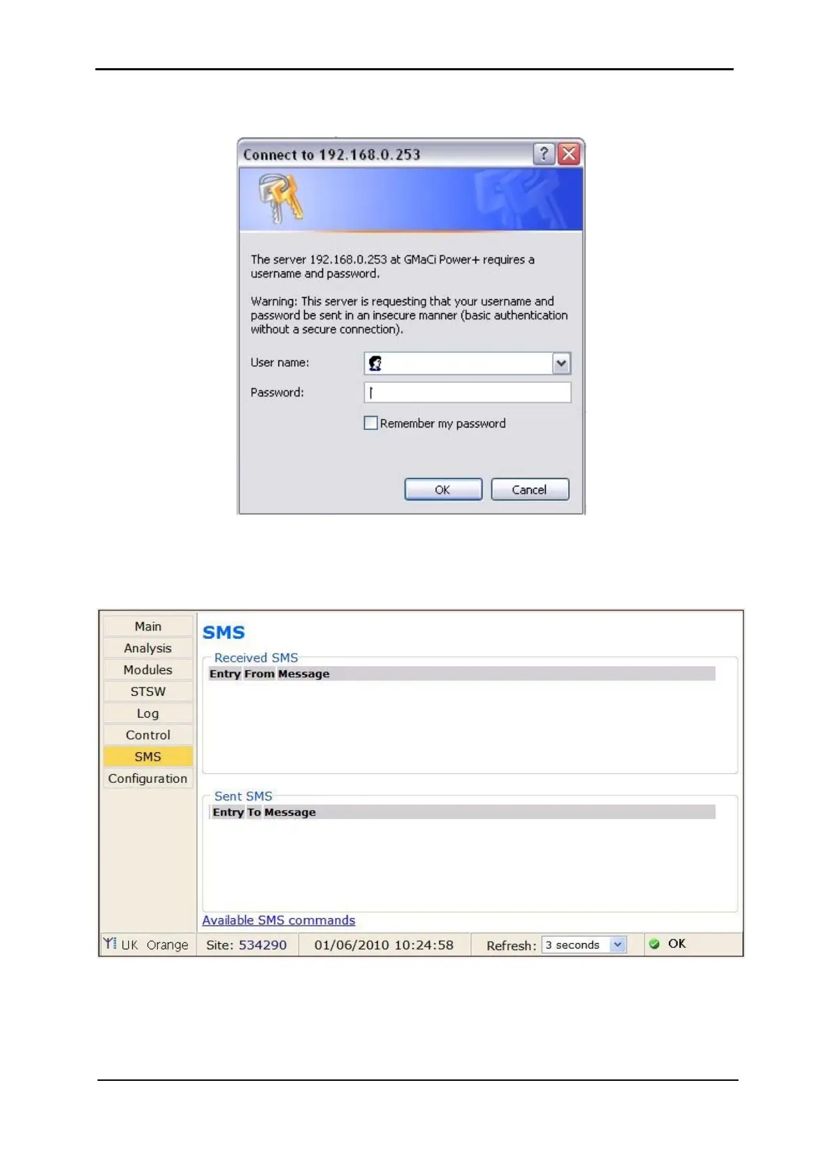 Figure 54: SMS screen