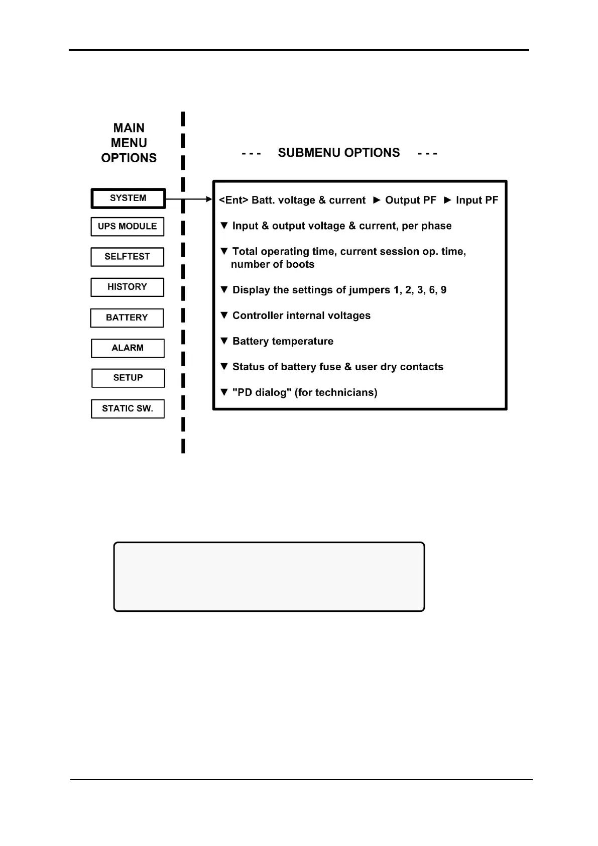 1. The SYSTEM option (option 1) shows the dc voltages and current (positive, negative