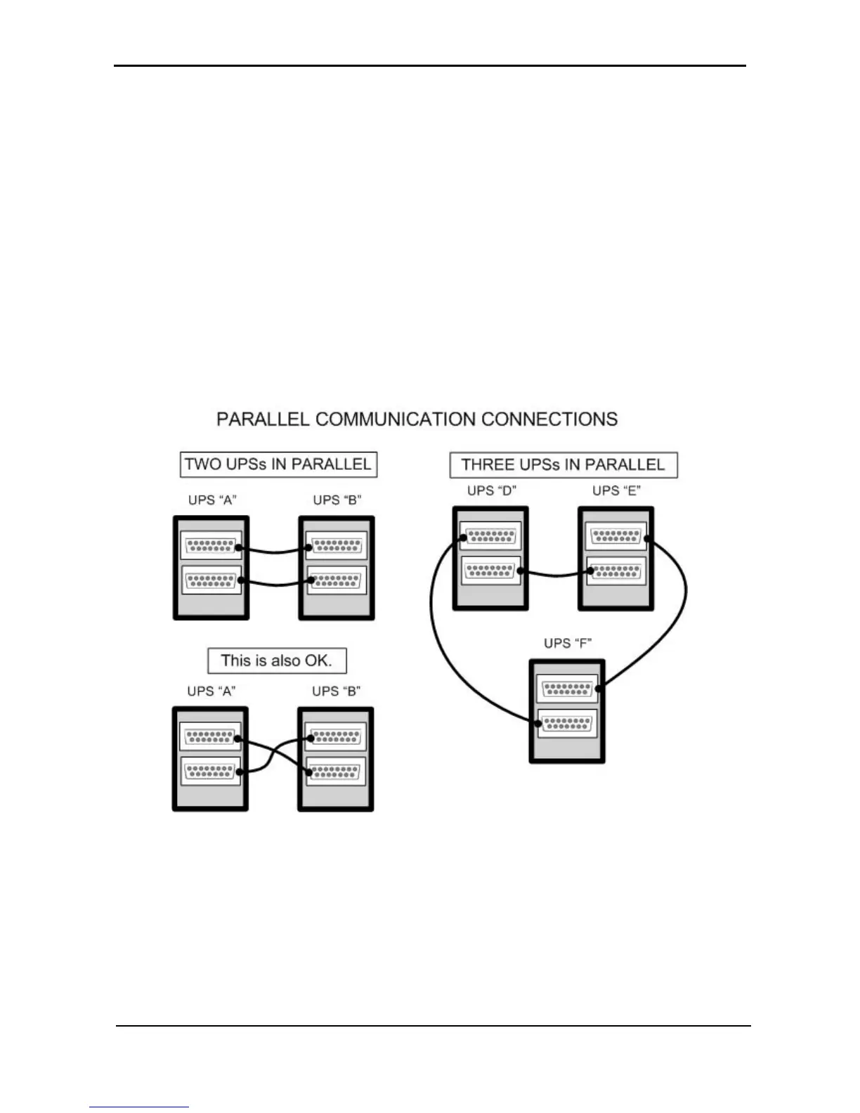 Each Power+ UPS has two D-15 parallel communication connection terminals.