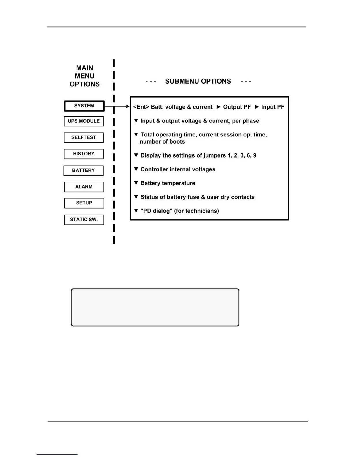 1. The SYSTEM option (option 1) shows the dc voltages and current (positive, negative and