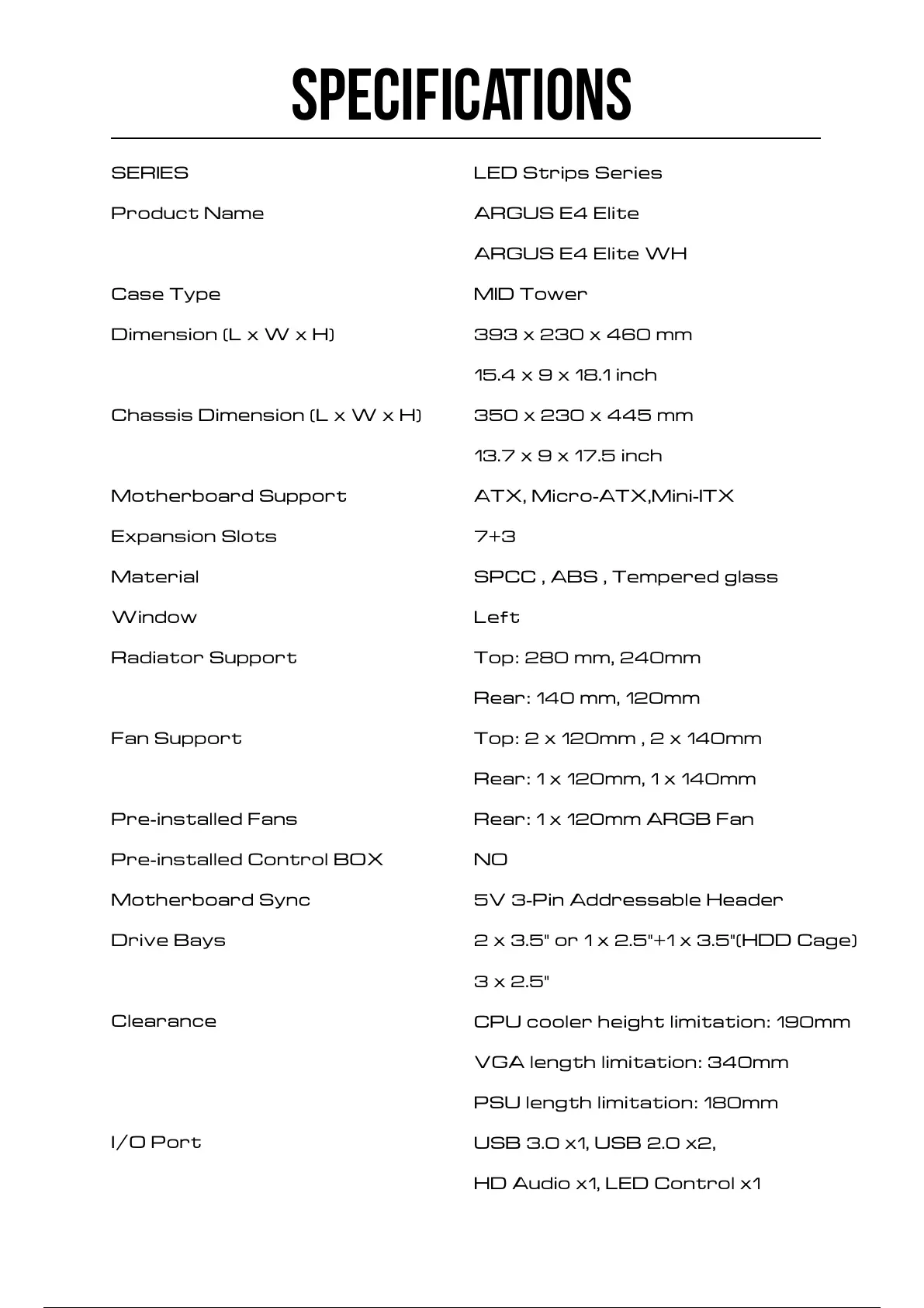 SPECIFICATIONS