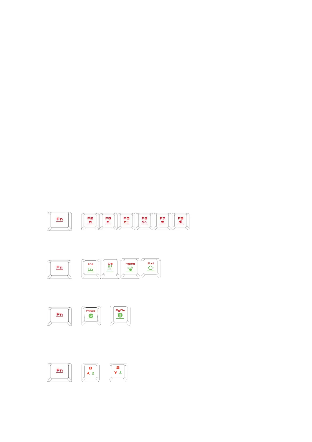 D. Keyboard backlight brightness level adjustment: [Fn + Num8] increases