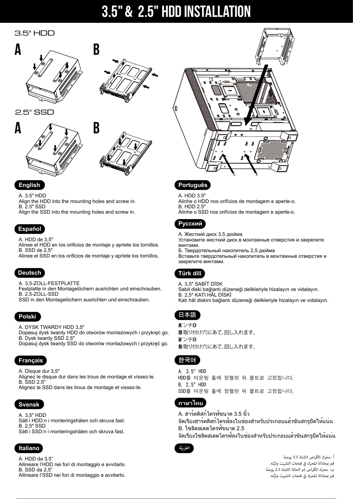 จัดเรียงฮาร์ดดิสก์ไดรฟ์ลงในช่องสำหรับประกอบแล้วขันสกรูยึดให้แน่น
