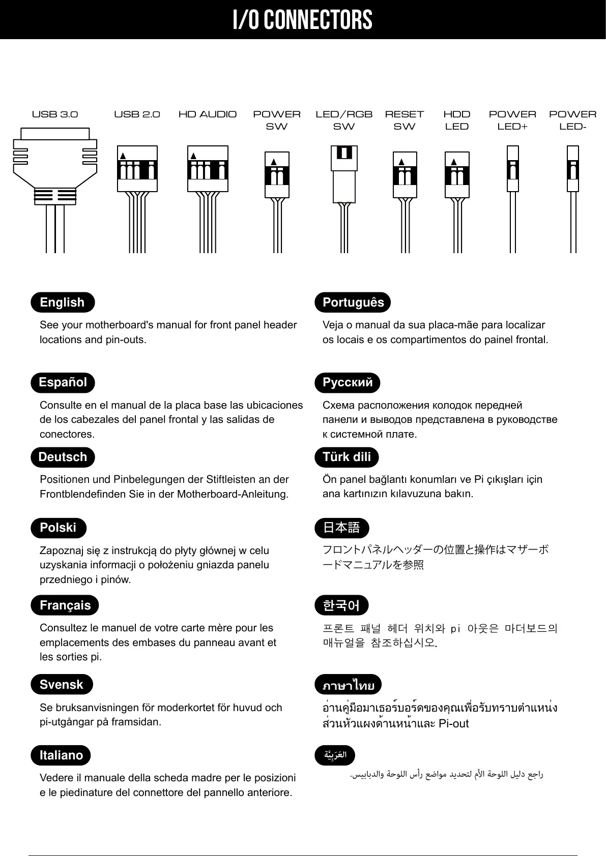 프론트 패널 헤더 위치와 pi 아웃은 마더보드의