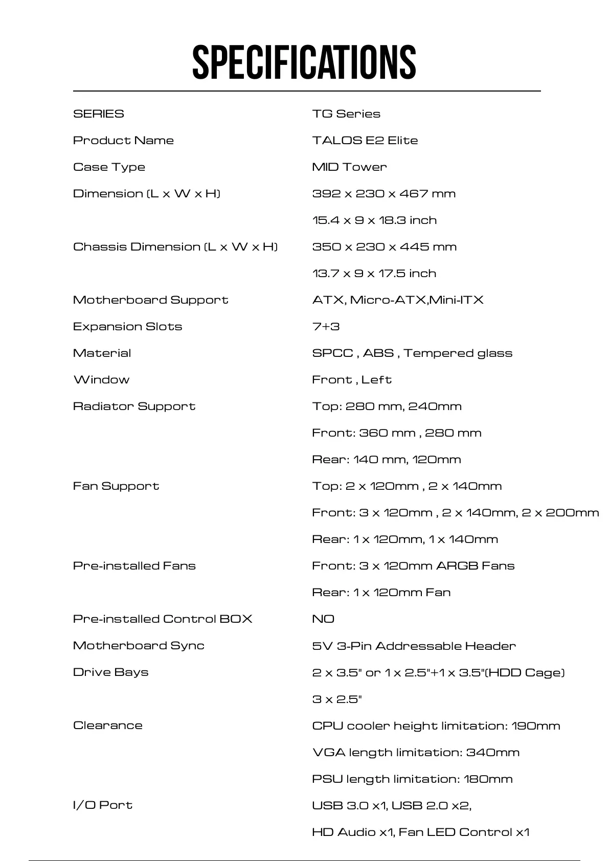 SPECIFICATIONS