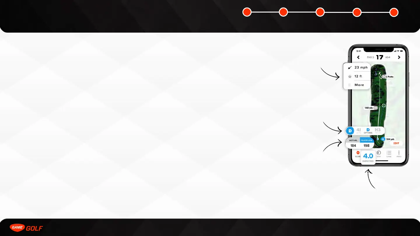 GAME GOLF smart caddie maps out the strategy shot by shot on the Play Golf screen.